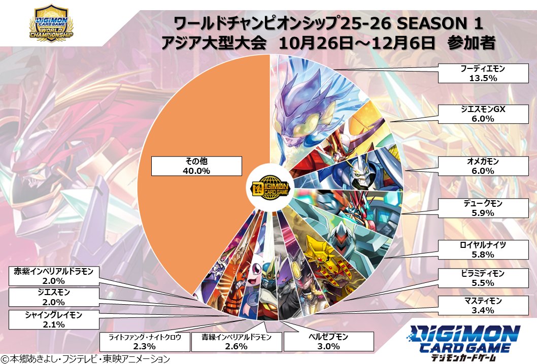 In the 2025-2026 Digimon TCG 2nd Season, Japanese players path to qualification is typically a 3 step process, having players play in local area tournaments in the first step, and then winners of those events going to a 2nd stage area qualifier event to get to nationals. This year the 2nd stage area qualifiers consisted of 14 events around the country, and they have recently concluded. We’ve been covering some of these event tops on the site but it seems Bandai has officially revealed the full breakdown for all of these events. You can find the information and graphics about them below: