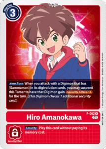 Still however, I felt like this wasn’t enough, I would only get 2 checks under the best case scenario, so in addition I added in the P-062 Hiro Amanokawa tamer card for Security Attack +1. I think this tamer is a bit underrated, giving any attacking Digimon who has a Gammamon in it’s sources Sec +1. This means at the top end, you can actually go out of archetype as long as your still have a Gammamon in sources and still make big swings. But I digress. Hiro with the additional security check meant that if I was able to use it with Regulusmon meant that I was swinging for 4 checks. This felt good. It also meant that any of my level 4 Digimon could start to check for 2 as well, and with the decks natural ability to gain DP from inheritance or effects, they would be more likely to survive the swing.